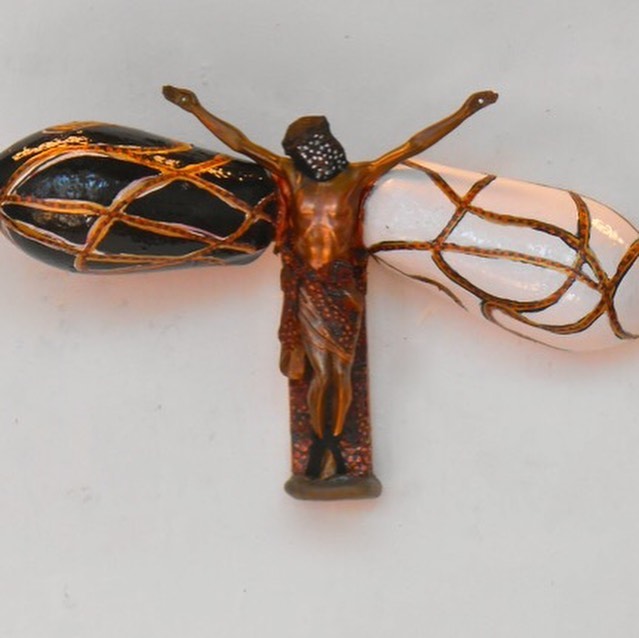 Burden Mixed media ©️EdithBons #contemporaryart #hedendaagsekunst #religieuzekunst #religionart #kruisbeeld #crucifix #art #artist #mixedmedia #gemengdetechniek #wallobjects #museumofcontemporaryart